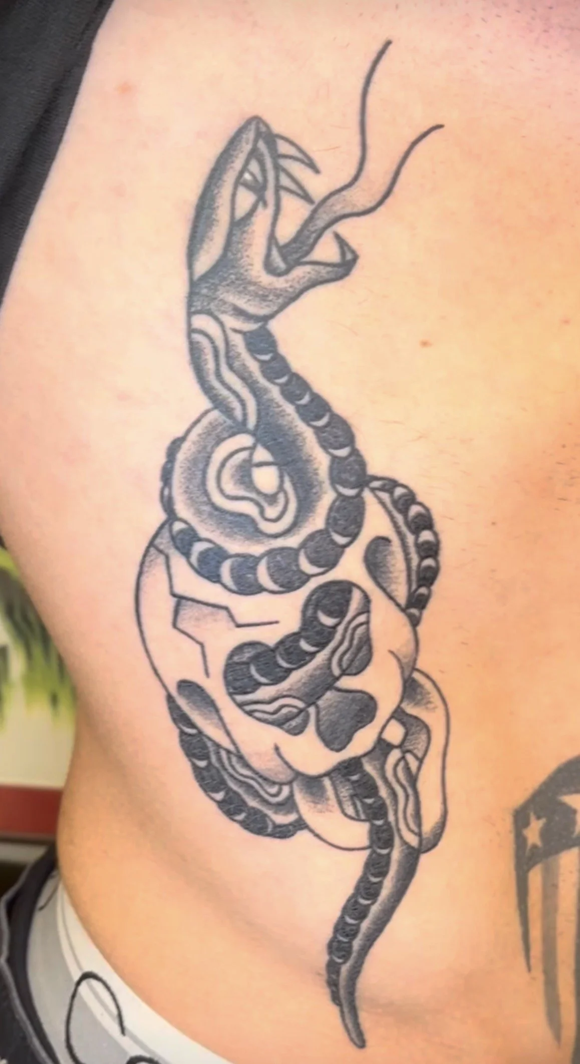 Known for his meticulous attention to detail in creating visually stunning custom work, Tom creates bold, illustrative graphic tattoos. His creative vision is rooted in tattooing’s traditions; crafting his work to hold the test of time. Tom is primarily focused in American traditional, illustrative black work, stippling and fine line tattooing.